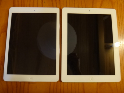 第4世代iPadは持ってなくて、64GBの第3世代は、孫のビデオをいっぱい入れたいということで実家へ。代わりに戻って来たiPad 2 32GBとの比較です…。(デザインは、ほぼ第2、3、4世代同じ。)