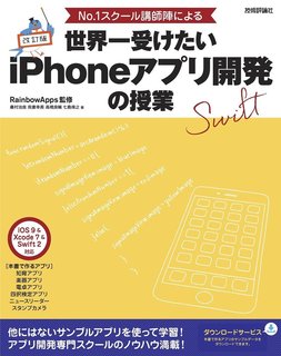 「No.1スクール講師陣による 世界一受けたいiPhoneアプリ開発の授業」本日発売。 10年前 「改訂版 No.1スクール講師陣による 世界一受けたいiPhoneアプリ開発の授業 [iOS 9&Xcode 7&Swift 2対応]」 iPhoneアプリ作りにチャレンジしてみたいけど,プログラミング経験がなくても大丈夫?本書は,そんな疑問にこたえます!アプリ開発の専門スクール「RainbowApps」講師陣の手によるやさしい学習書。実際にアプリを作りながら,楽しくあきずにスキルアップ。RainbowAppsは,これまで5000名以上のアプリ開発未経験者に教えてきました。そのノウハウがぎっしりと詰め込まれています。Swift 2&Xcode 7に対応。あなたもiPhoneアプリ開発の楽しさを体験してみませんか? 「世界一受けたいiPhoneアプリ開発の授業」を探す⇒Amazon/楽天
