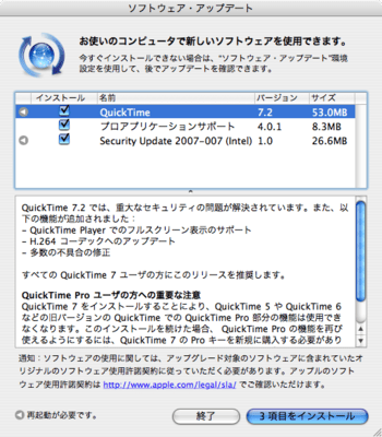 でも、一応iTunes7.3.2の修正内容だけでも確認しておこうと、「ソフトウェアアップデート」をみたのですが…