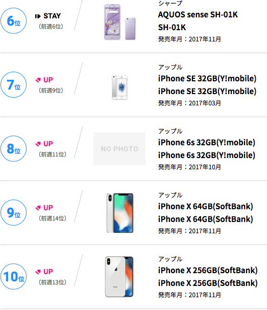 また、今週はソフトバンクのiPhone Xが、9、10位と、先週より大幅にランキングを上げています。